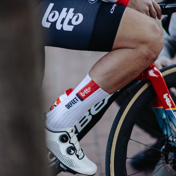 The ultimate sprint sock. At speeds of 38mph, shown to save 24+ watts compared to a bare leg. Tested and proven on the world's largest stage, the 2023 Tour de France.